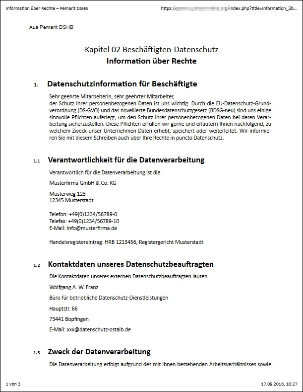Beispiel Kapitel Beschäftigten-Datenschutz: Information über Rechte