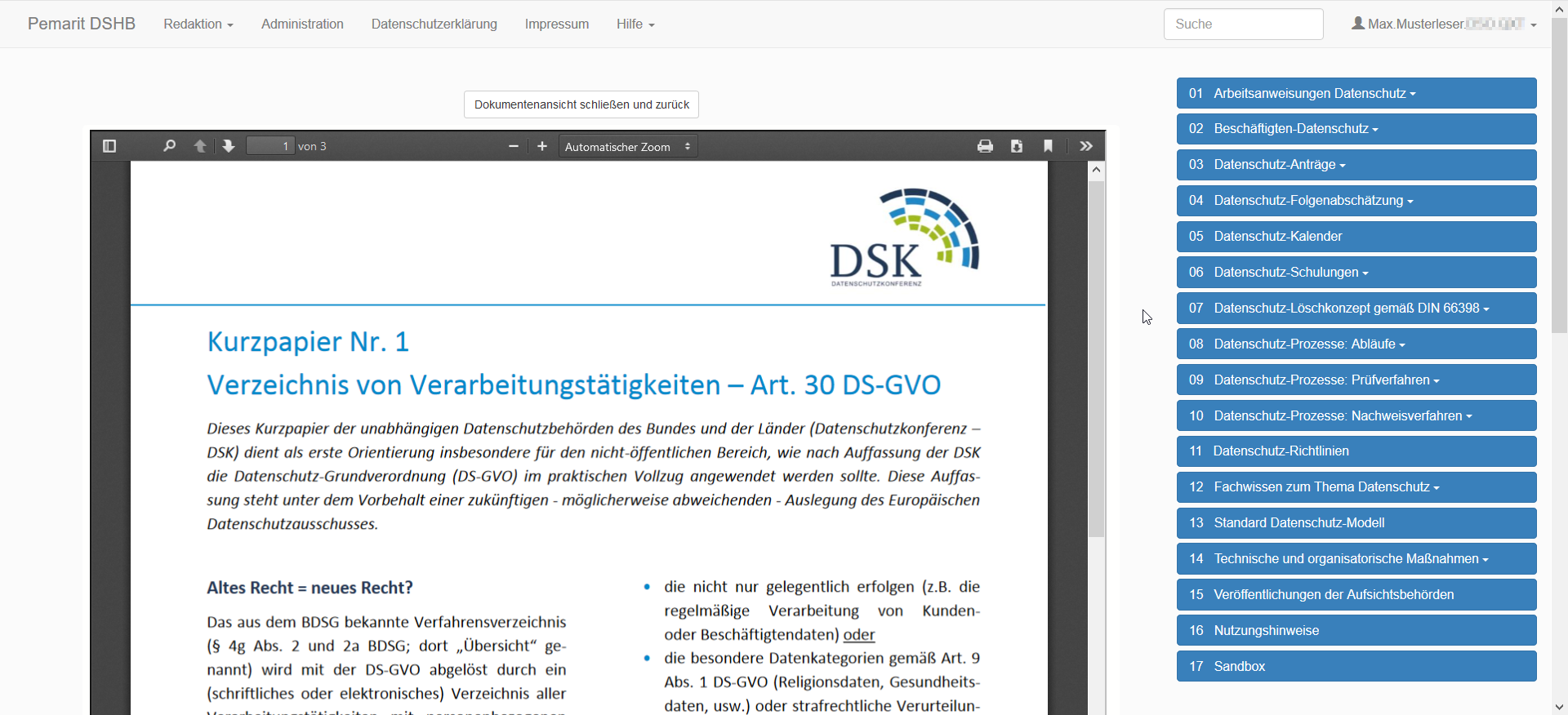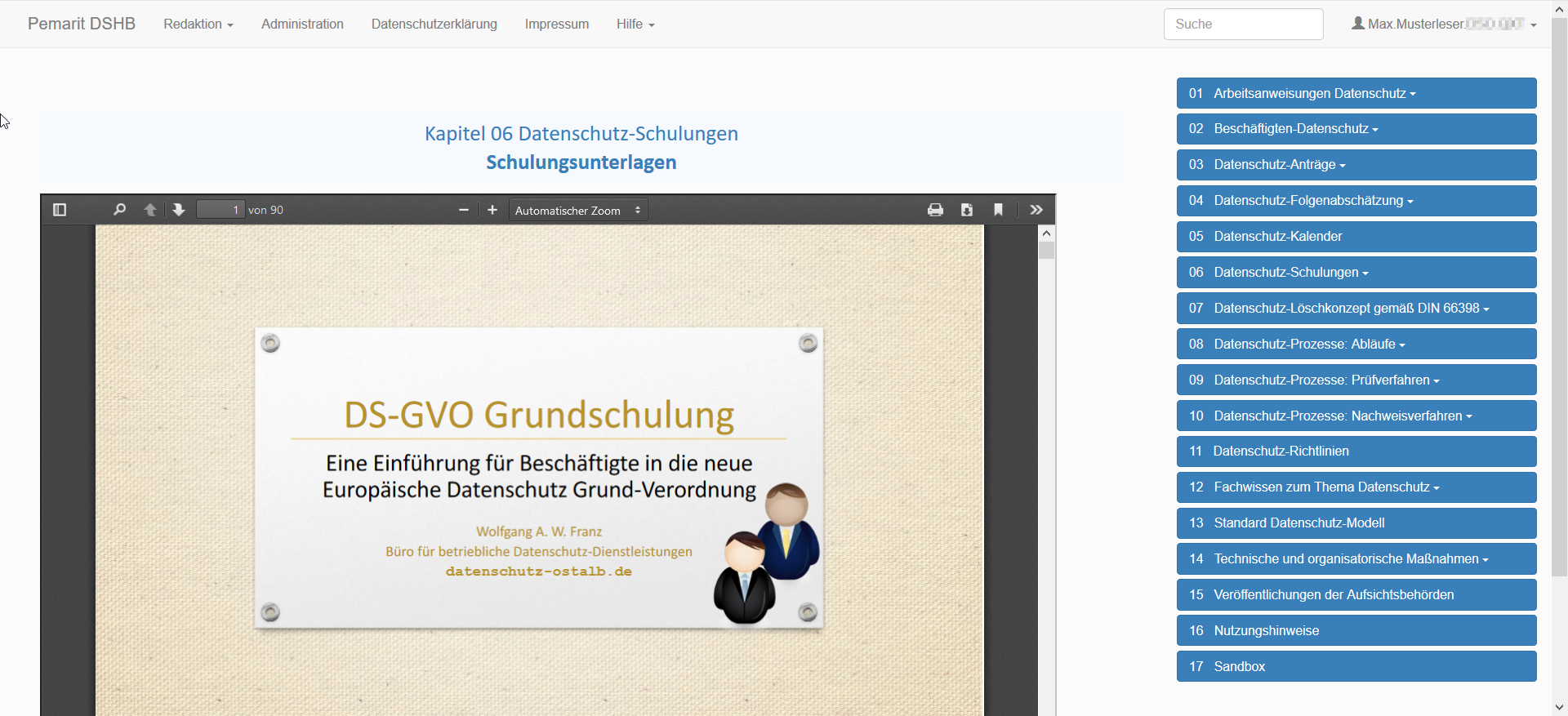 Datenschutz-Schulungen können direkt im DSHB durchgearbeitet werden