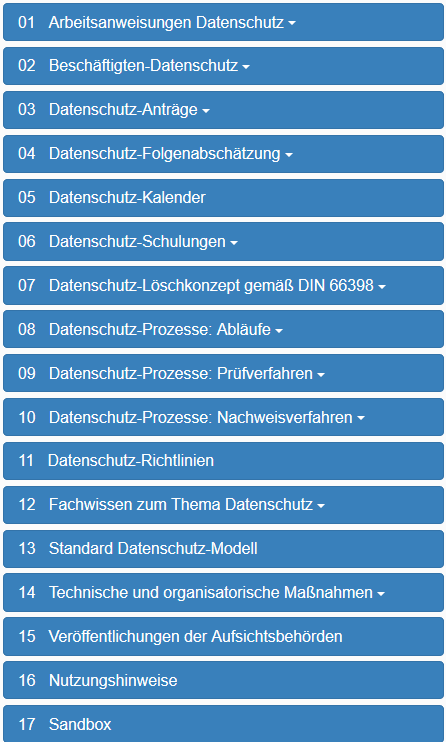 Übersicht über die Hauptkapitel des Datenschutzhandbuchs